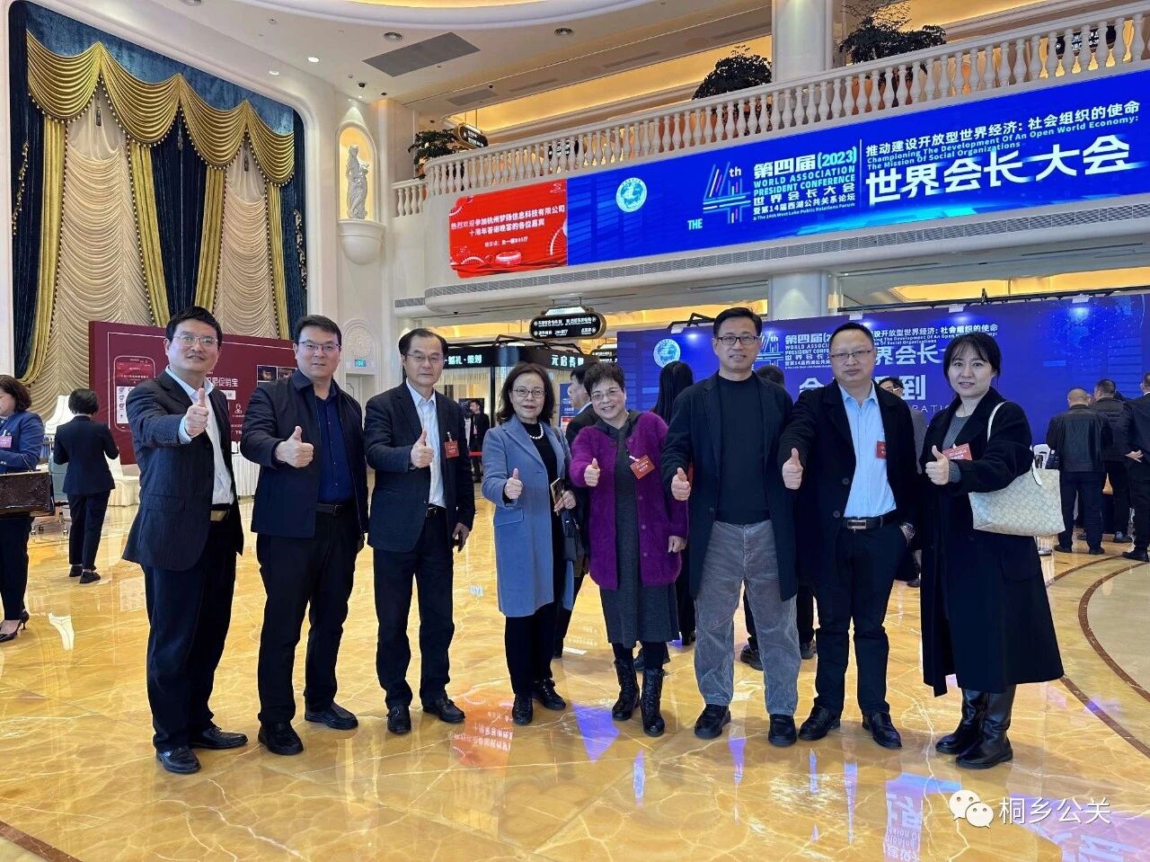 杭州市委副书记、杭州市人民政府市长姚高员,中国人民对外友好协会副会长李希奎,中国社会工作者联合会党委书记、副会长周慧,十二届浙江省政协副主席周国辉等领导出席大会,超1000名来自全球的会长(副会长)在线下杭州主会场参会。桐乡市公共关系协会执行秘书长黄真华;桐乡市公共关系协会会员、浙江恒知教育有限公司总经理钱加英出席大会。