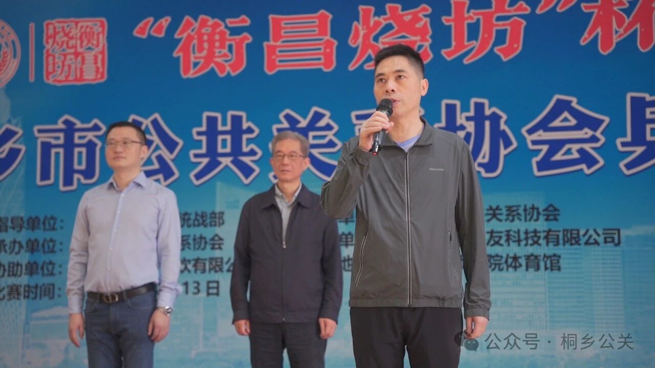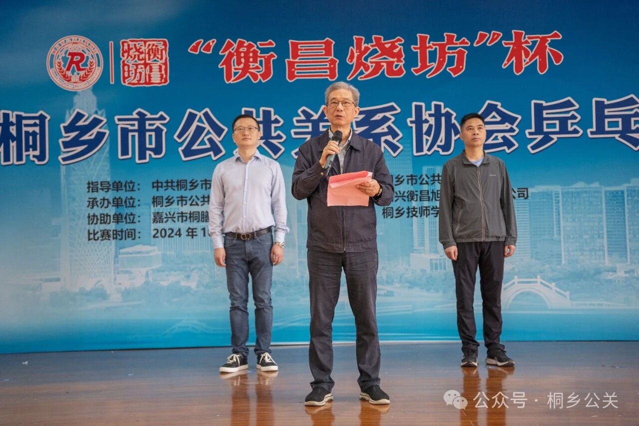 在秋风送爽、硕果累累的佳季,我们齐聚一堂,共同见证这一盛事。2024年10月13日上午,"衡昌烧坊"杯2024桐乡市公共关系协会乒乓球赛在桐乡技师学院隆重开幕。桐乡市委统战部常务副部长田新奇,桐乡市公共关系协会会长、原桐乡市人大副主任张建林,桐乡市公共关系协会执行会长、浙江崇德建设有限公司董事长郁振华,嘉兴衡昌旭友科技有限公司总经理、旭友会桐乡分会秘书长吴志远等嘉宾莅临开幕式。开幕式由协会执行秘书长黄真华主持。